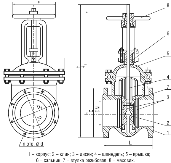 - Тип задвижки - параллельная двухдисковая с выдвижным шпинделем